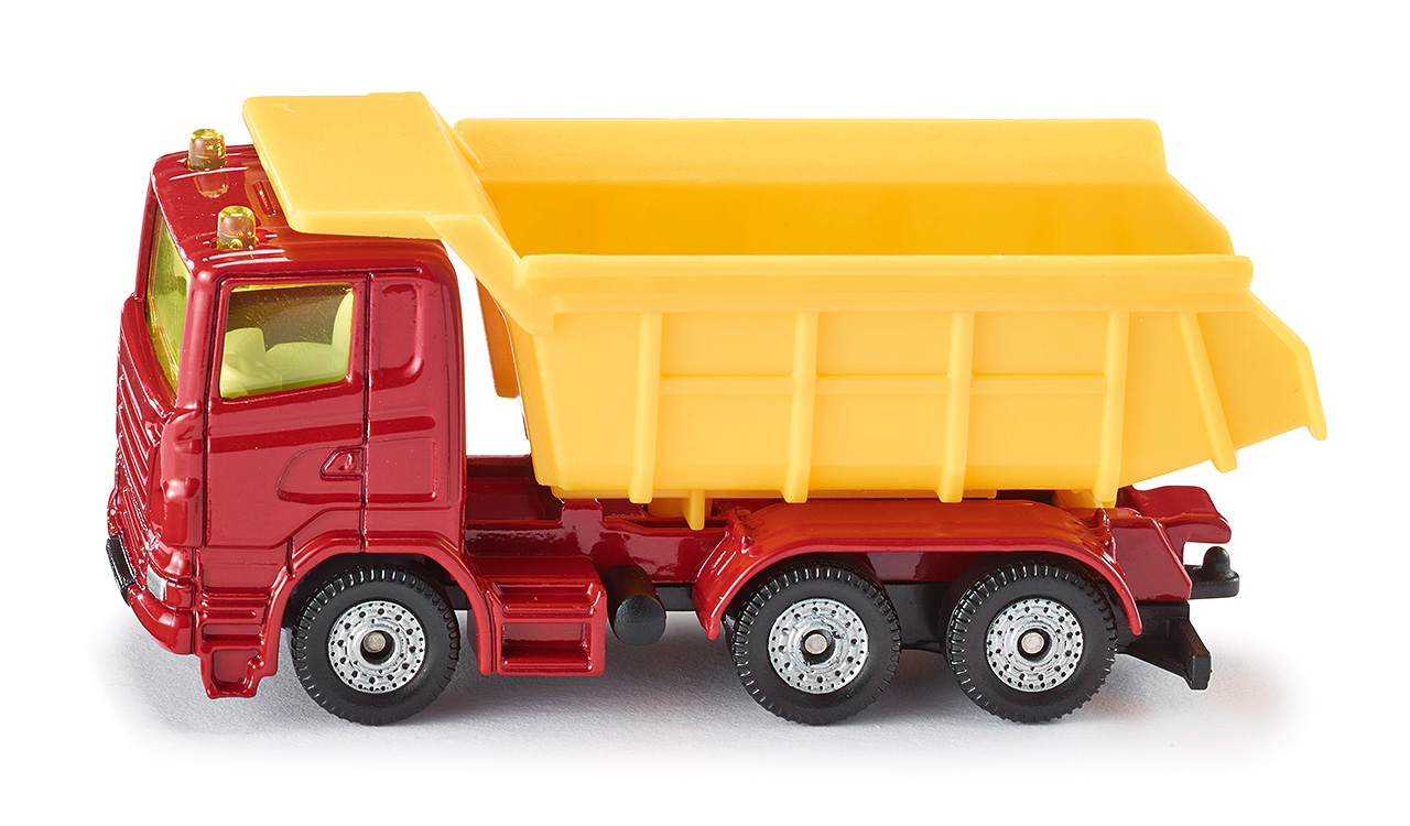 Ciężarówka z ruchomą wywrotką, wykonana z metalowych i plastikowych elementów. Gumowe opony umożliwiają swobodne poruszanie się po różnych powierzchniach. Model jest odzwierciedleniem pojazdu rzeczywistego. Wysoka precyzja szczegółów i atrakcyjna kolorystyka zapewniają udaną zabawę dla młodszych i starszych.
